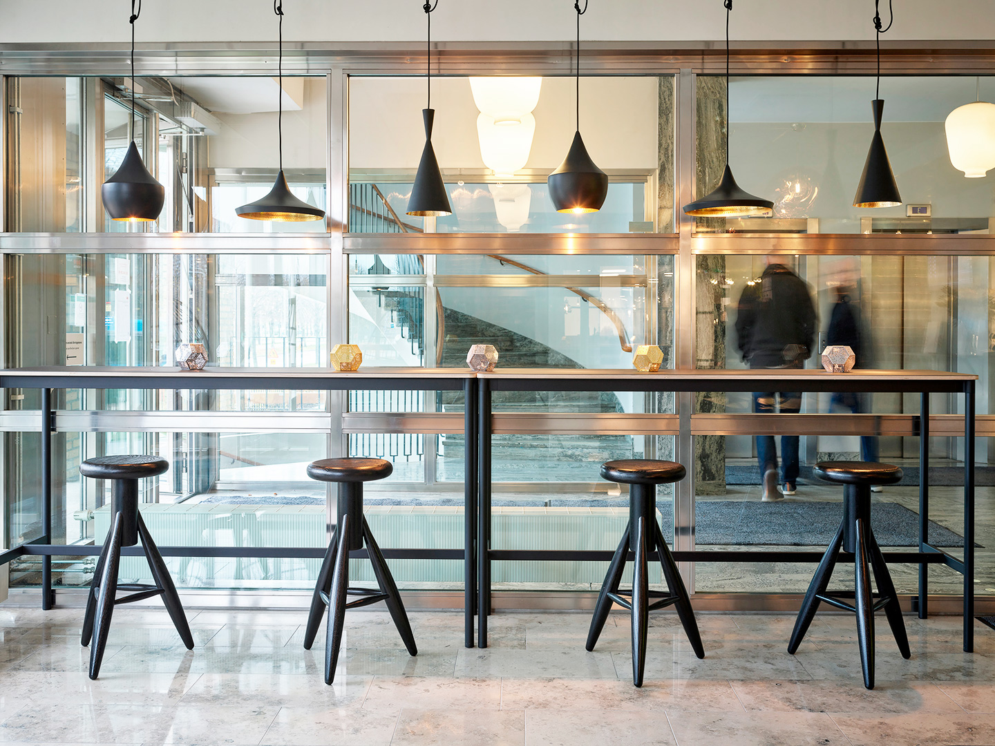 En viktig del i inredningsprojektet var att se över den befintliga inredningen, försöka återbruka samt behålla så mycket som möjligt samt tillföra ny inredning som anpassades till den befintliga.