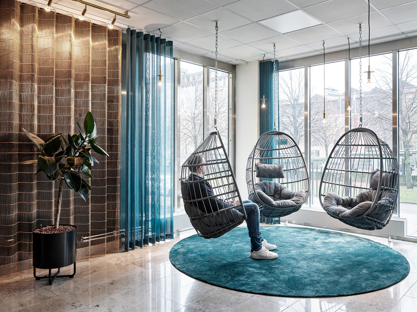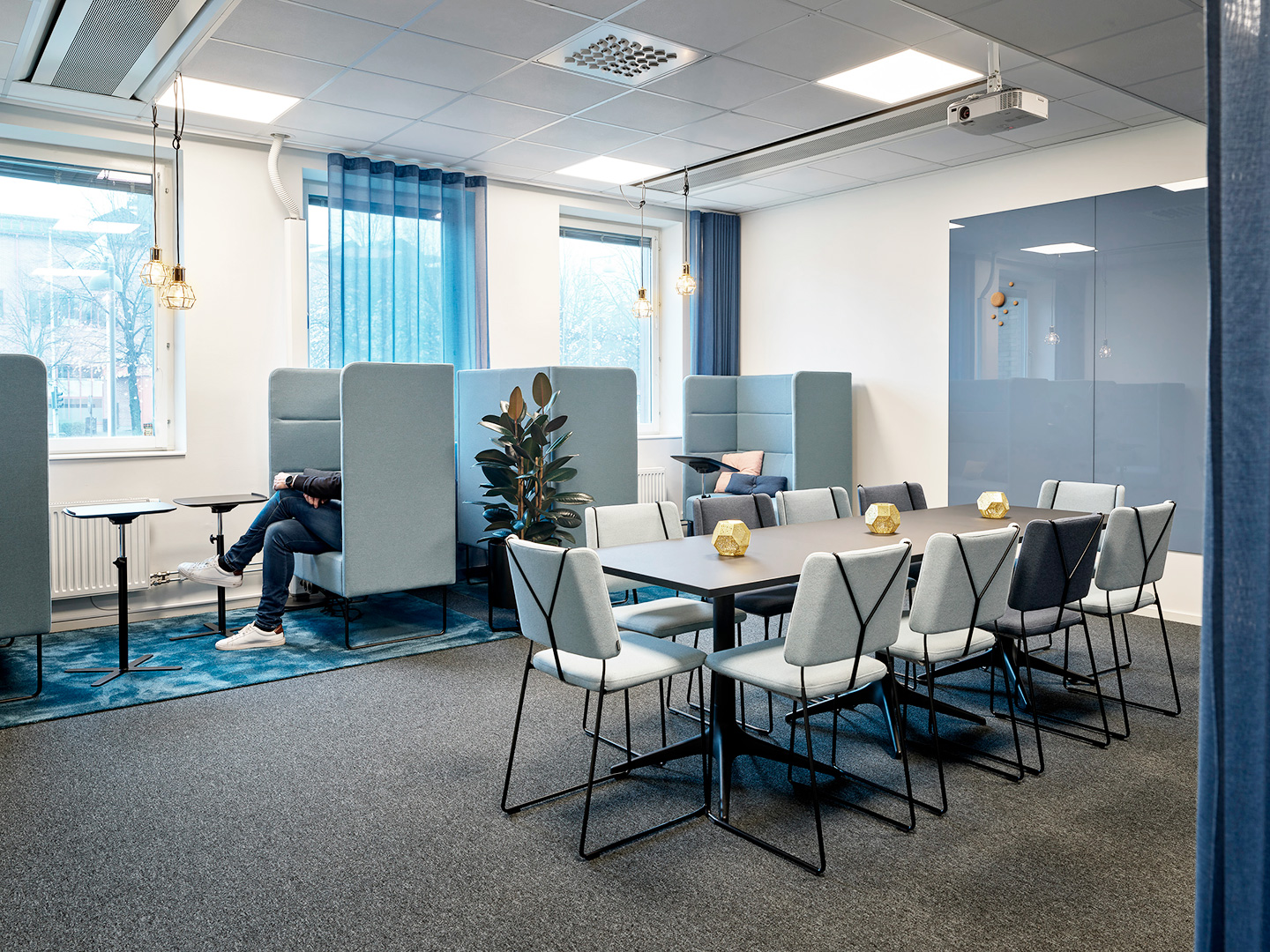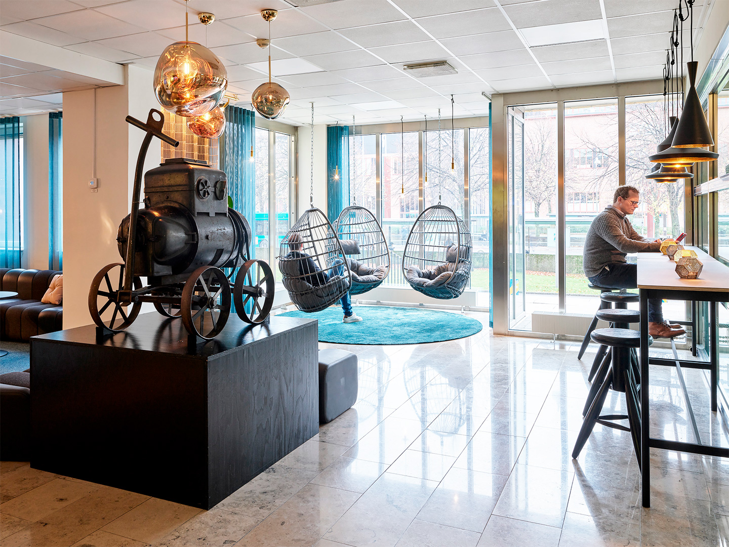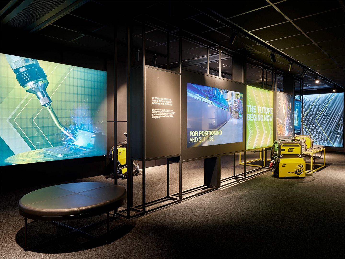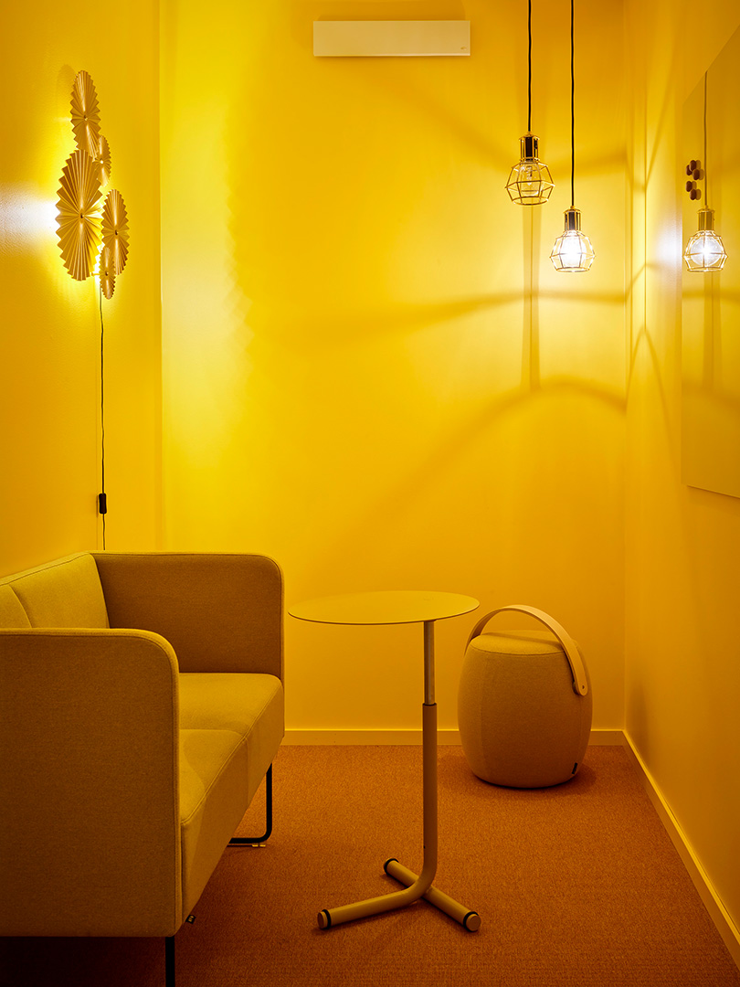 Konceptet för inredningsprojektet är just svetsning och svetslågan. Möbler, kulörer och material valdes noggrant ut för att föra tankarna till detta.