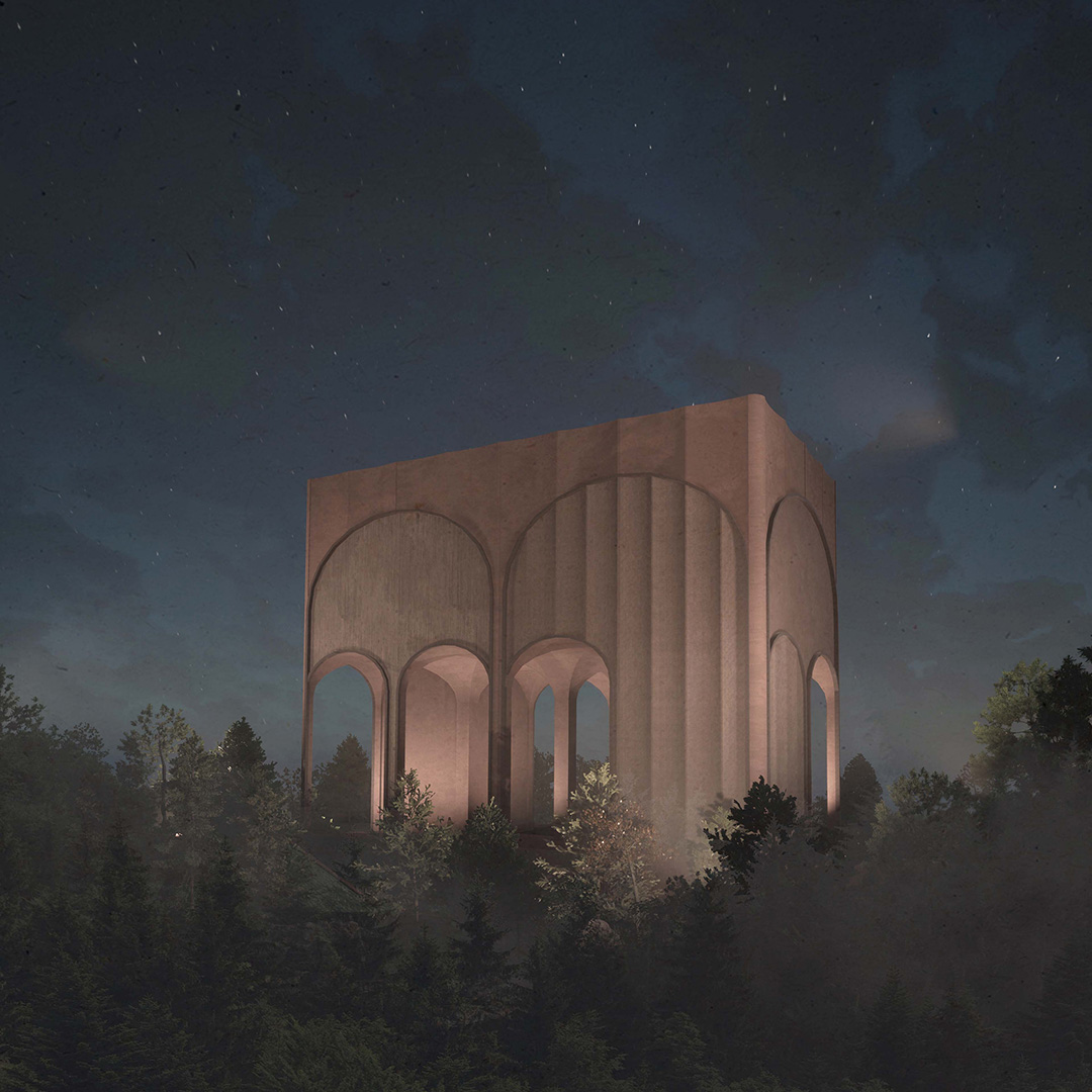 Bland ljung och tallar på höjden bredvid Storskogen tronar sig Hemmesta Bågar upp. Vilande på två ben och en skog av pelare svävar vattentornet likt romarnas akvedukter över hällmarken.