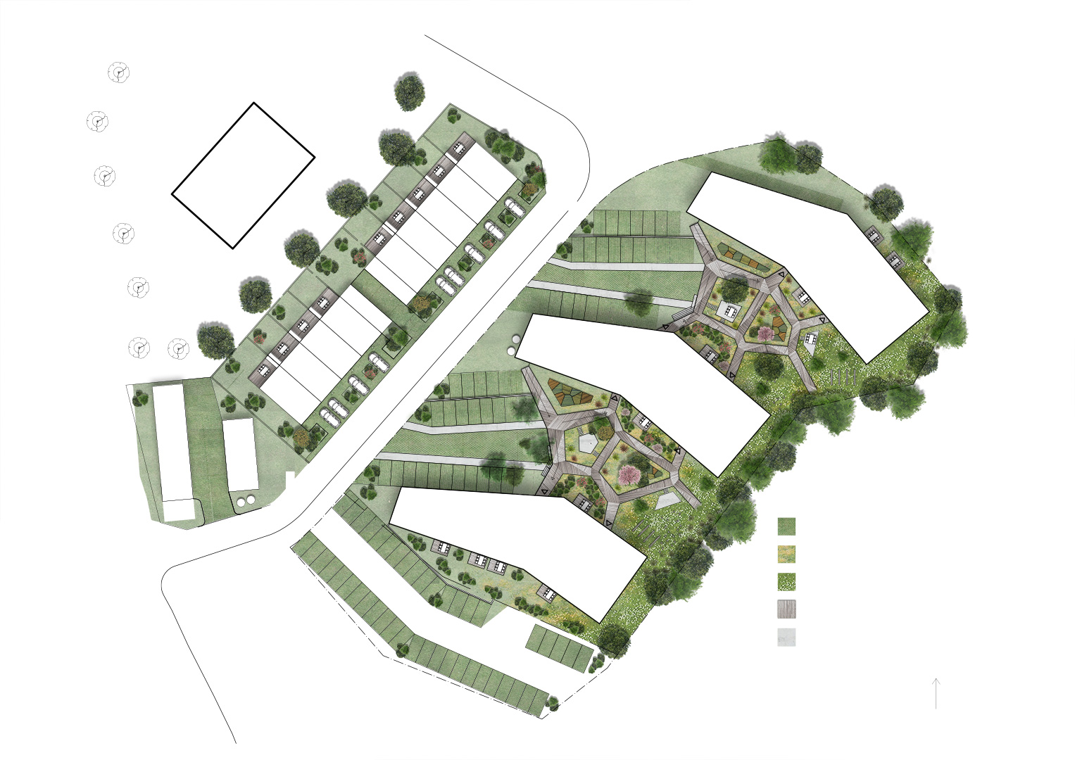 Under 2015 vann vi en markanvisningstävling om Stenbrottet i Mölnlycke, Härryda kommun, tillsammans med Tornstaden. Förslaget presenterar ett bostadsområde med strax över 120 bostäder fördelade på hyres-, bostadsrätter samt radhus.